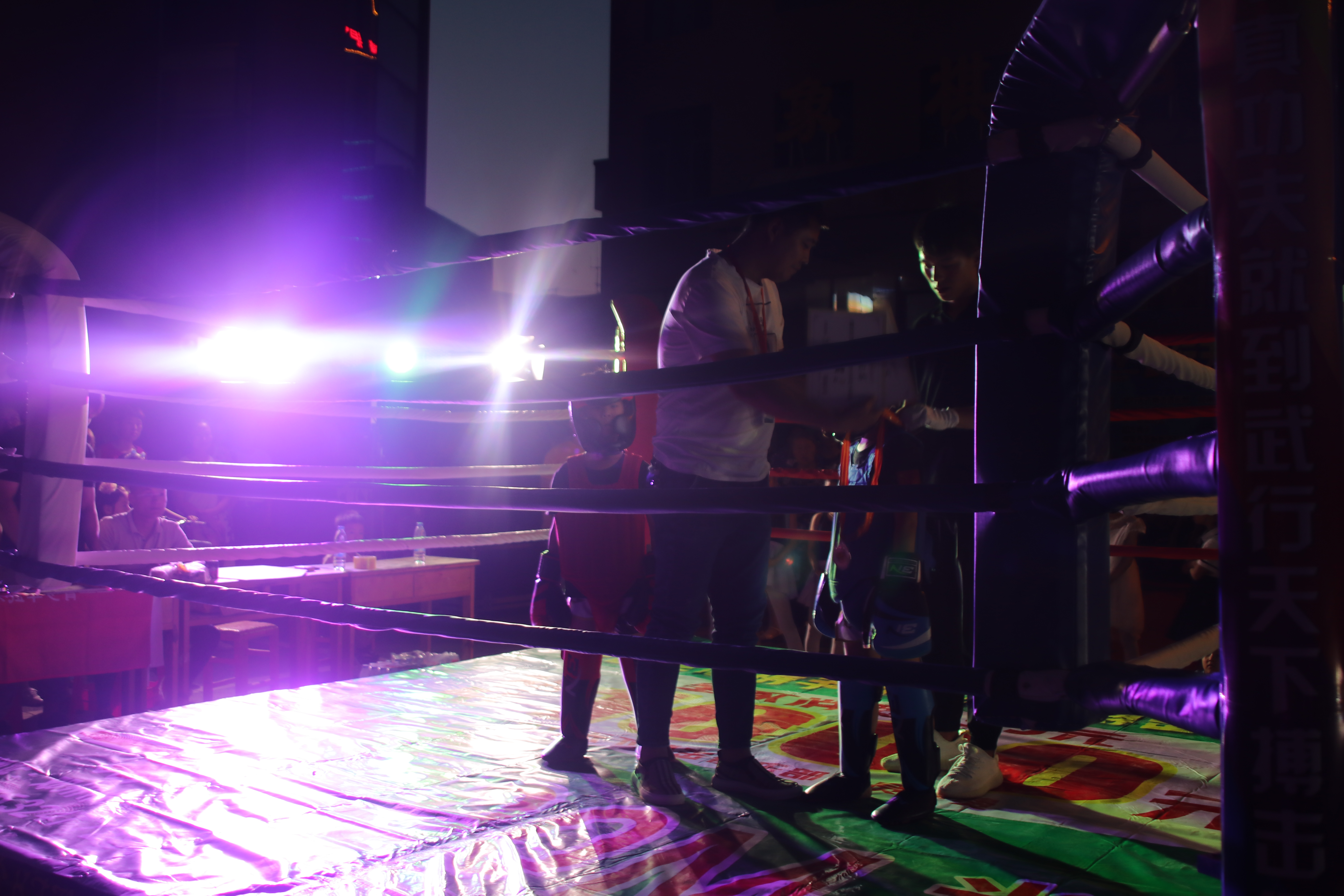 十組對決比賽進行的緊張有序,少兒參賽員們不怯場、不退縮的競賽精神感動了在場每一個人的心,他們勇敢挑戰自我,勇敢面對對手、主動出擊、選擇性規避,將拳擊技巧展現的淋漓盡致,同時也將拳擊精神融入到了比賽中。每場比賽結束還會有一個友誼的擁抱,十分有愛。左邊蘇亞太陽能燈光現場也會在比賽間歇有顧客前來詢問性能、價格,工作人員均詳細解答、耐心解釋。并約定可到工廠店進一步洽談合作事項。