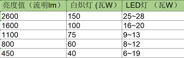 很多顧客在前來公司咨詢的時候,發現都有類似的誤解,認為瓦數越高,燈越亮。這是不正確的,衡量LED燈的關鍵參數是流明值,也就是亮度。下面給大家一個參考值,可以先體會一下。